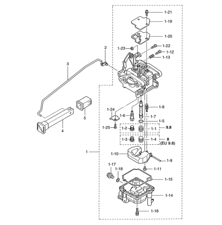 Flottörhus Tohatsu MFS 8 - MFS 9,8 hk, 4-takt Nr 1-14 i bild 2Art nr. 3V1-03120-0968,48 SEK