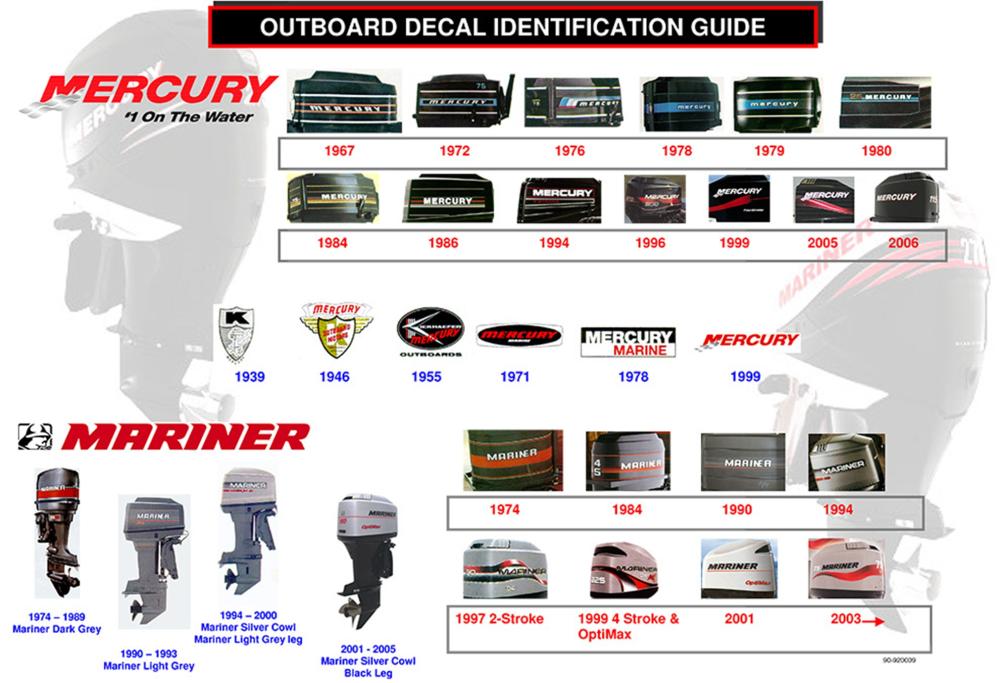 Mercurys motornummer hittar du oftast på en dekal eller plåt på en av upphängningsbyglarna, det kan även vara instansat i en frostplugg på motorblocket.