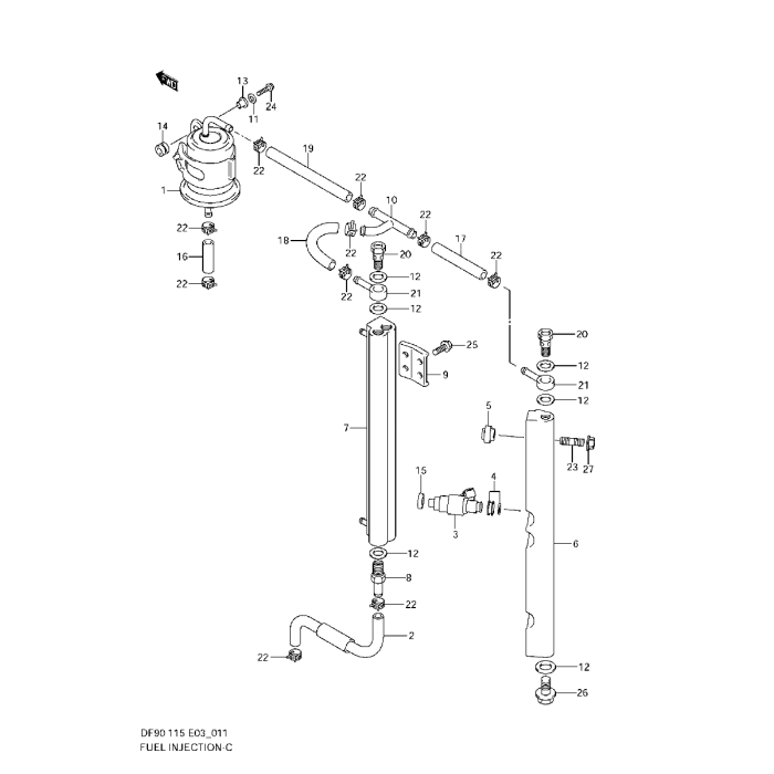3-vägskoppling bränsle Suzuki DF 60 - DF 70, och DF 90 - DF 140 hk, äldre ej A-modeller, 4-takt samt DF 150 A - DF 200 A, 4-takt