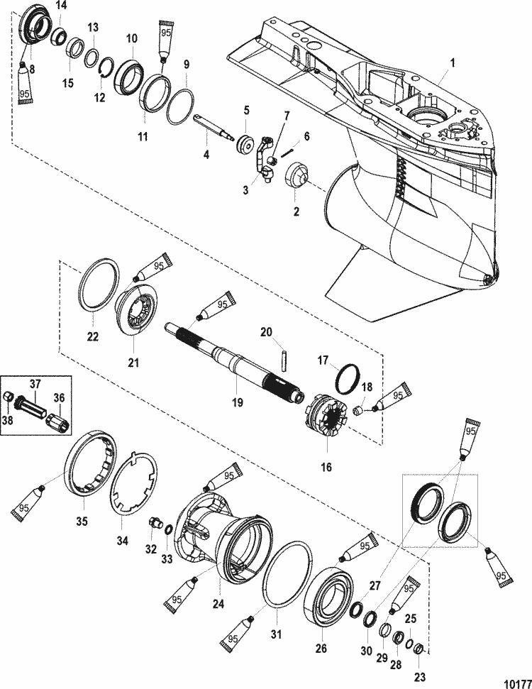 Bricka, distans, propelleraxel Mercury F 150 SeaPro nr 3B111735 och nyare, Verado L 4, L6, V 6, V 8 4-takt, samt Optimax/DFI vissa modeller