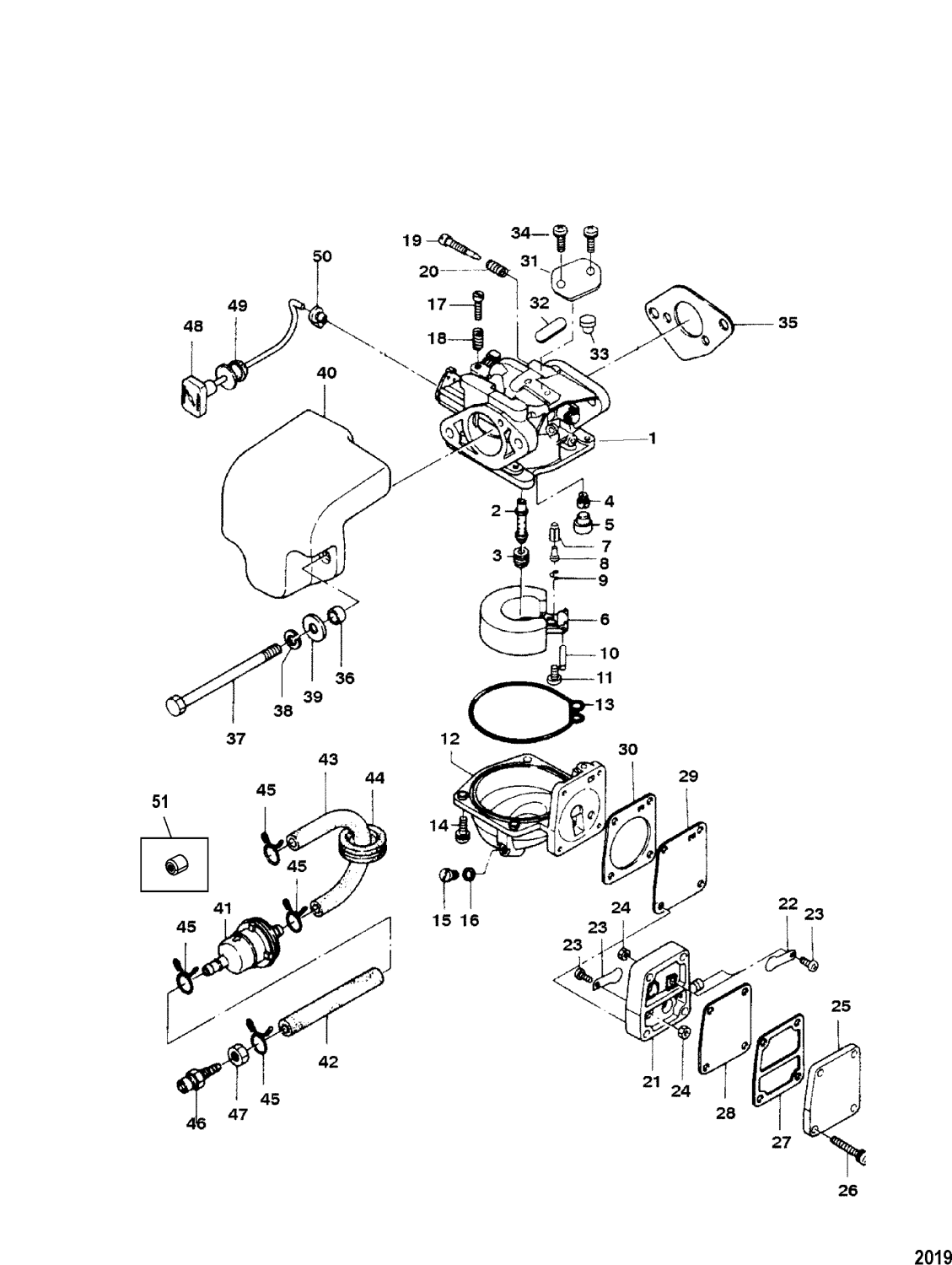 Bult Mercury, håller förgasare på 4 - 5 hk, 102 cc och 6 - 9,8 hk, 169 cc 2-takt samt F 4 - F 6 hk, 123 cc 4-takt flera modeller