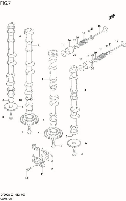 Bult kamaxel Suzuki DF 70 A - DF 350 A, flera modeller