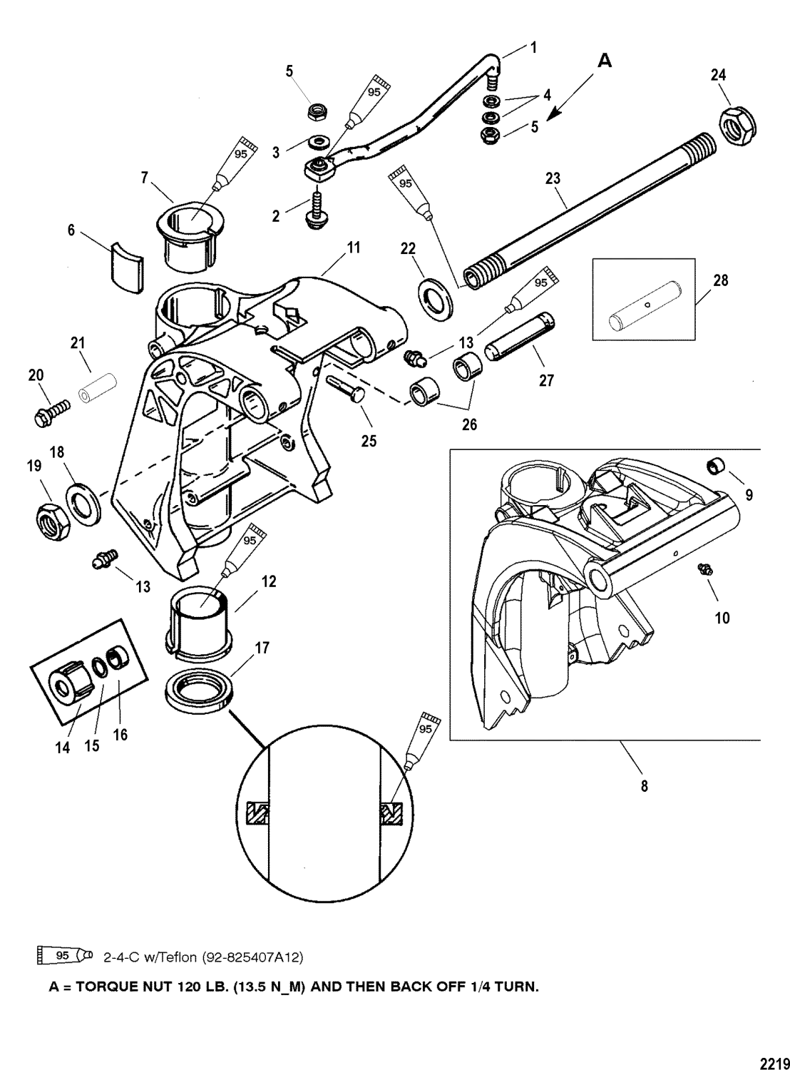 Bussning riggrör, övre, Mercury 30 - 50 hk, 2-takt flera modeller samt F 25 - F 60 hk, 4-takt flera modeller (ej Tohatsu)