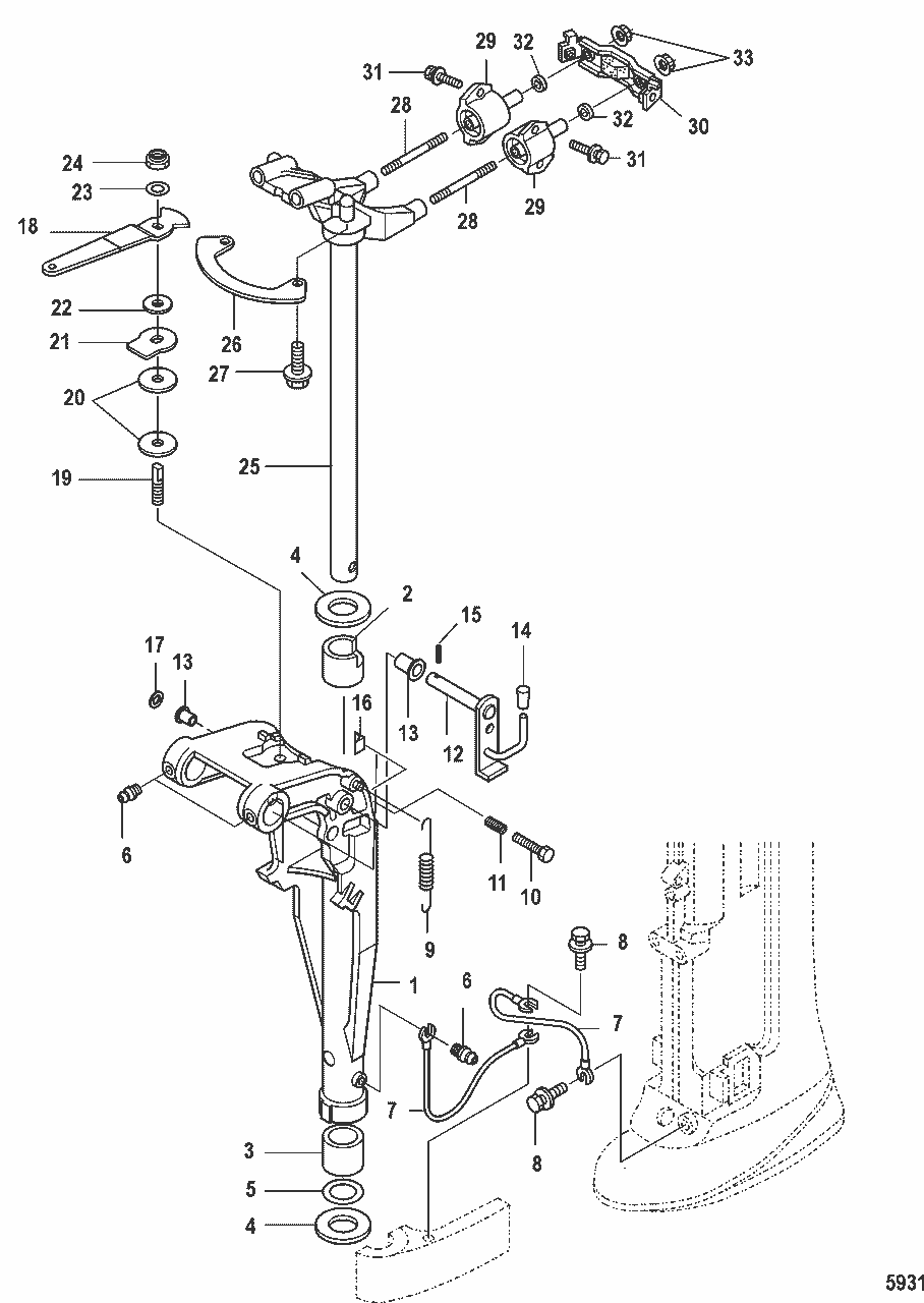 Bussning riggrör Mercury F 8 - F 9,9 hk, 209 cc, 4-takt powertiltmodeller