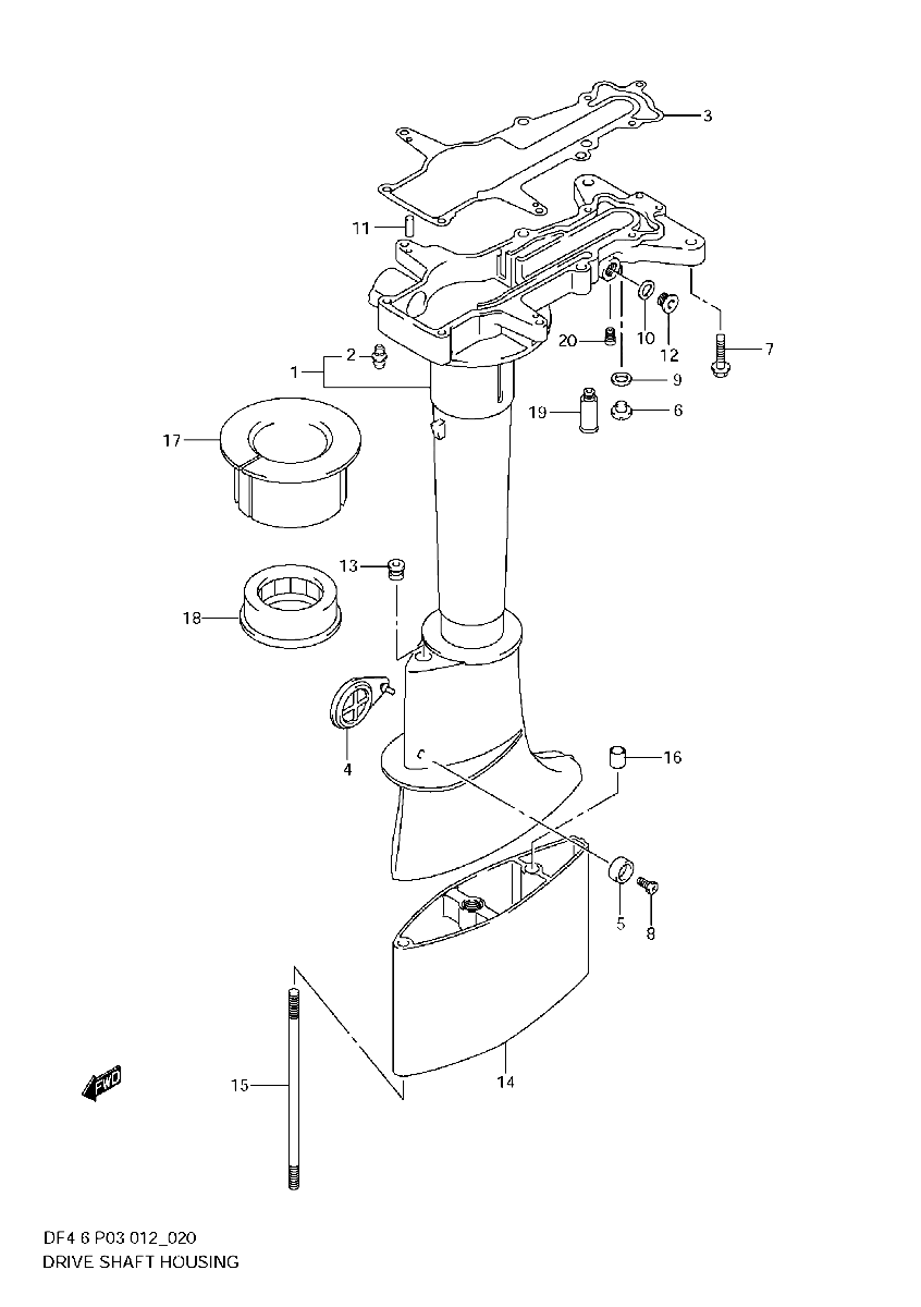 Nedre bussning rigg Suzuki DF 4 - DF 6 hk, 4-takt, ej A-modeller