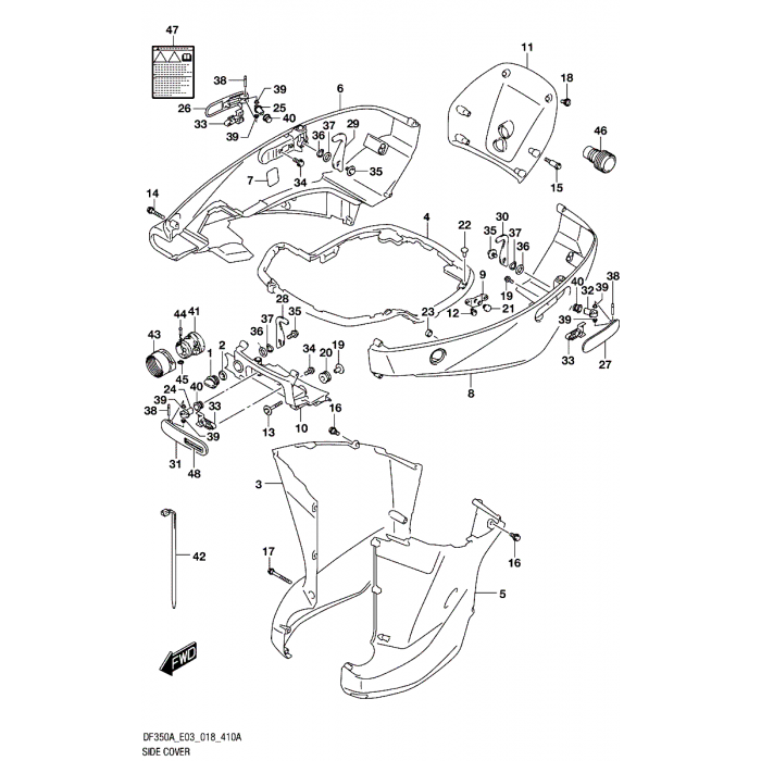 Fäste för kåplås Suzuki DF 200 - DF 350 A, flera modeller