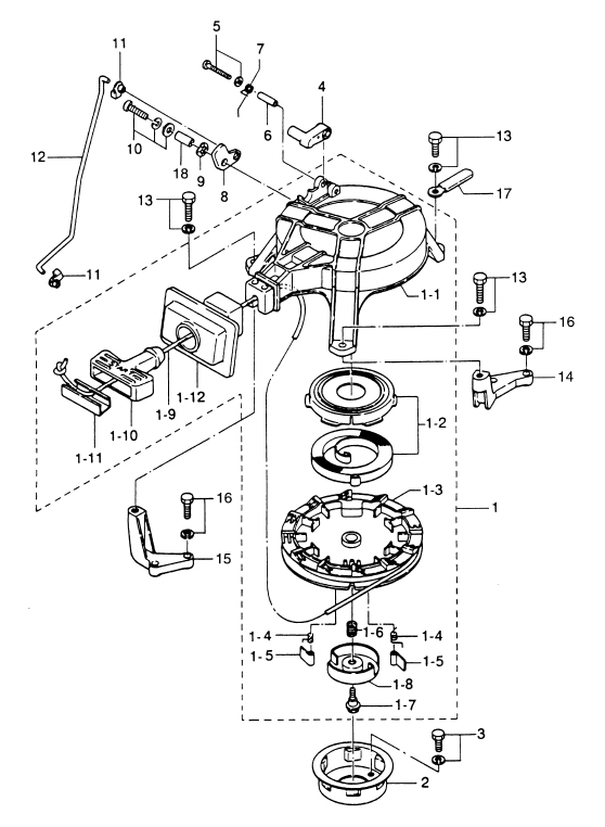 Fjäder startapparat 4 - 9,8 hk, 2-takt, Tohatsumodeller