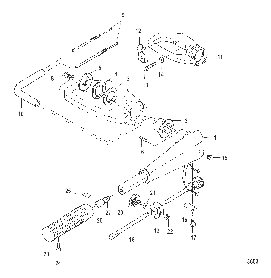Gaswire Mercury F 25 Sea Pro 4-takt, 492 cc Tohatsumodell, förgasare
