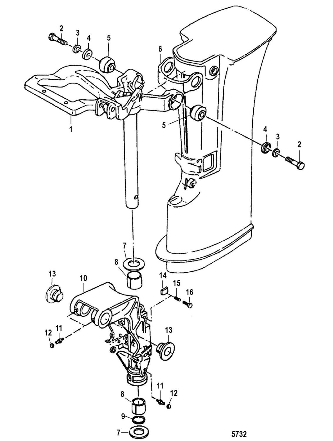 Övregummidämpning rigg Mercury 9,9 - 18 hk, 2-takt 247 cc Tohatsumodell
