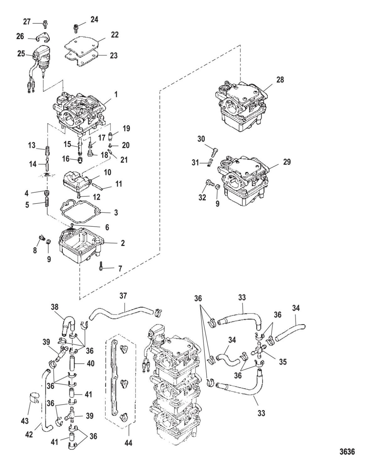 Tätning i förgasare Mercury F 15 SeaPro 328 cc och F 25 SeaPro 492 cc, 4-takt Tohatsumodeller