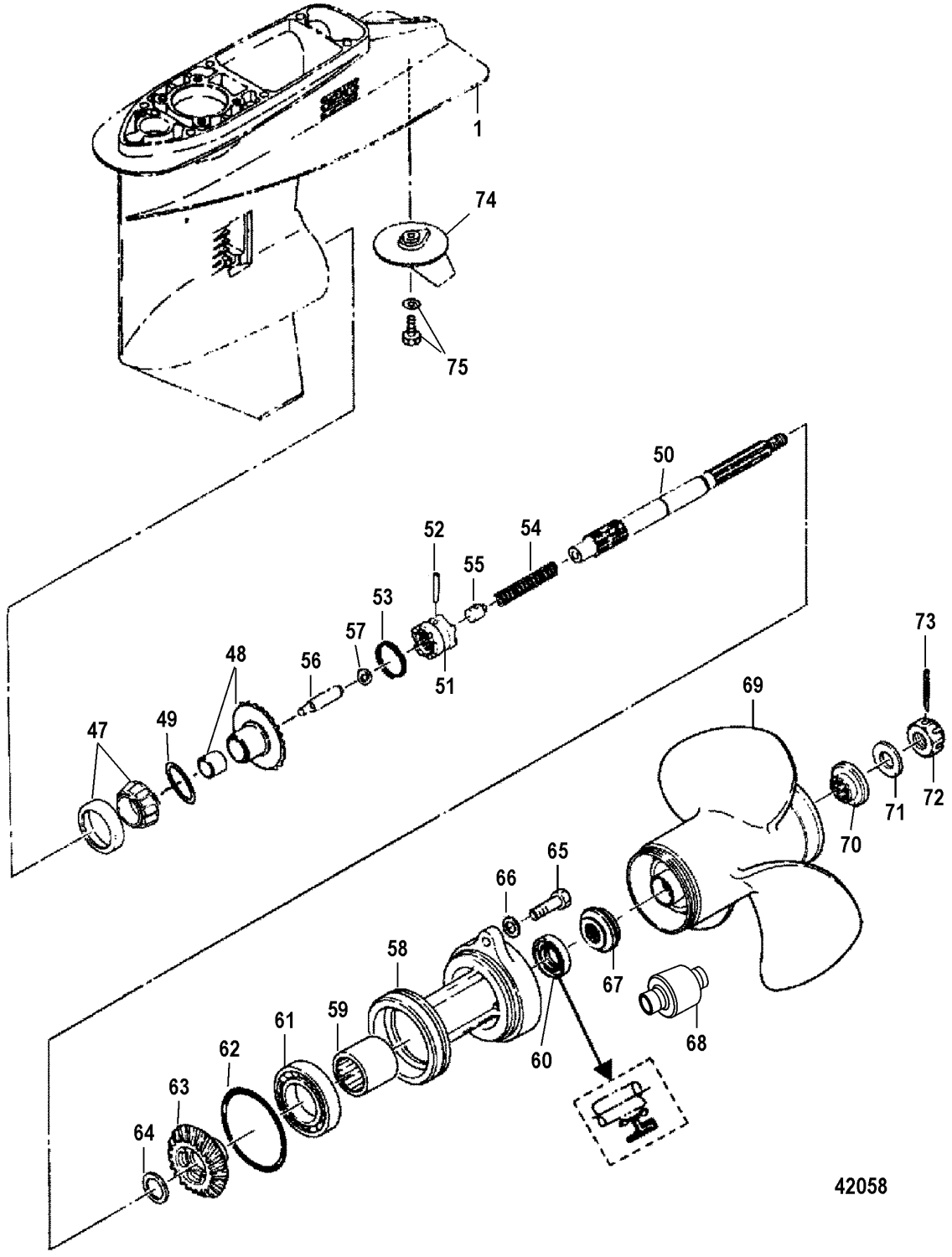 Hållare fjäder växelhus Mercury 40 - 50 hk, 697 cc 2-takt, Tohatsumodeller