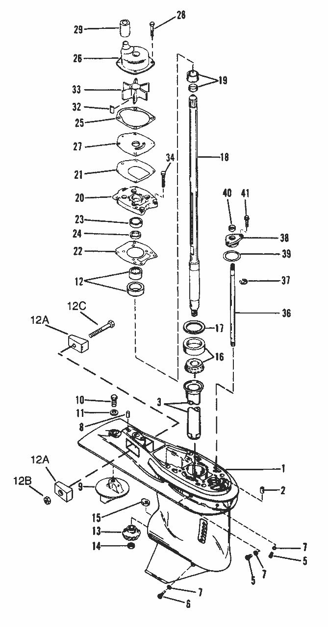 Hylsa drivaxel, växelhusolja, Mercury 40 - 60 hk, 4-takt samt 50 - 125 hk, 2-takt flera modeller stora växelhuset 2,33:1 utv.