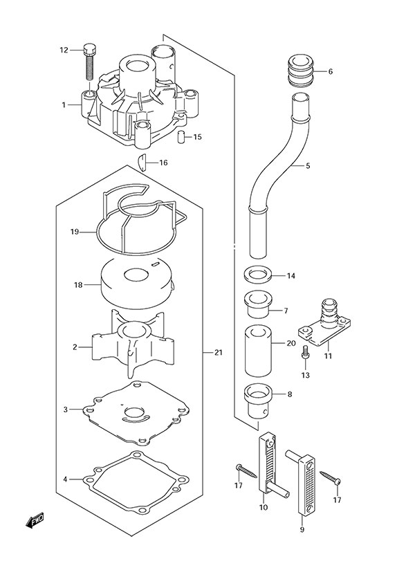 Reparationssats impellerhus Suzuki DF 90 TK - DF 100 ST + T - DF115 A + B + T - 140 A + B + T, 4-takt flera modeller