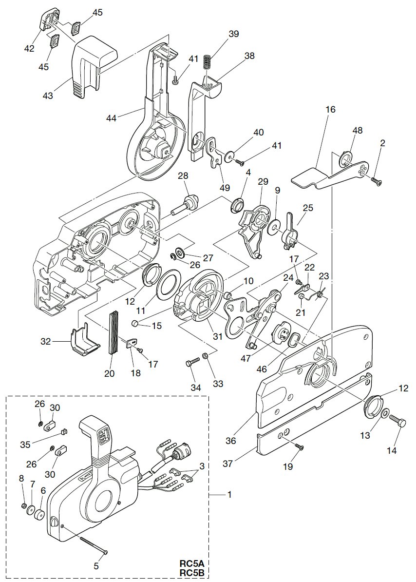 Justerskruv friktion reglage Tohatsu, passar RC 5 och RC 8 - serien (dvs äldre reglage)