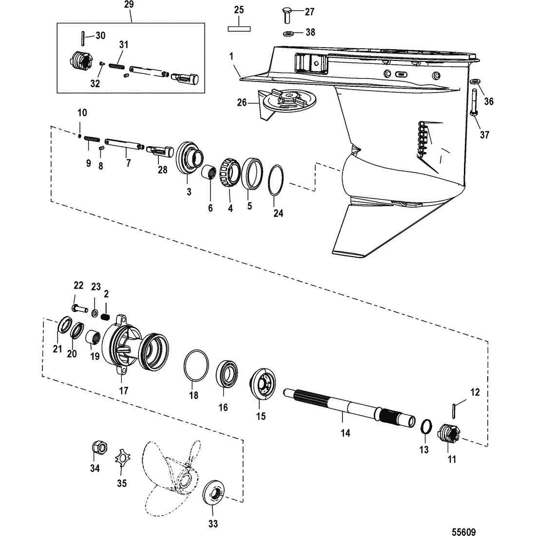 Kam/follower/växelarm växelhus Mercury F 30 EFI - F 60 EFI, 4-takt flera modeller