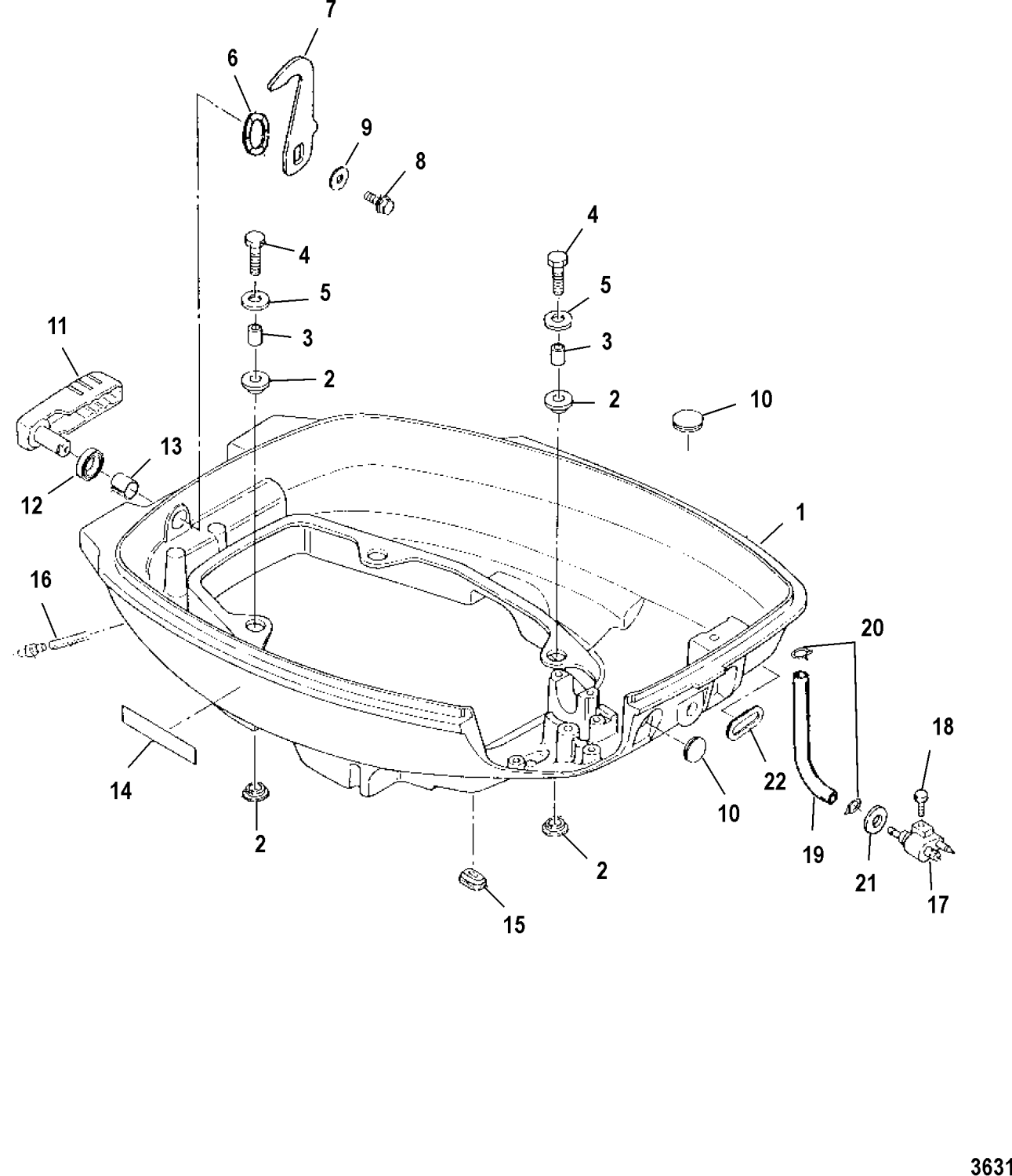 Hake, kåplås, Mercury F 15 SeaPro, 328 cc samt F 25 SeaPro, 492 cc, 4-takt