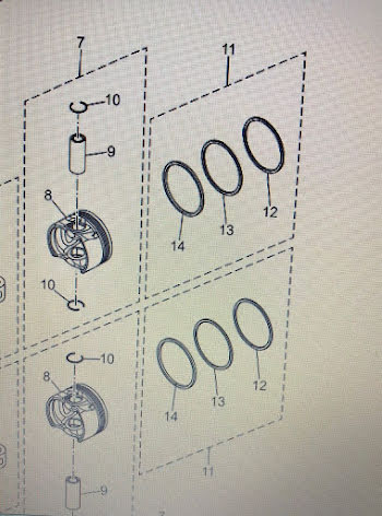 Nr 7 i bild. Innehåller kolv, ringar, tapp och låsclips till en cyl.