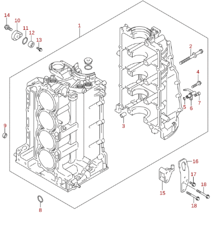 Kylningsnippel cylinder/kolv Suzuki DF 150 A - DF 200 A, 4-takt