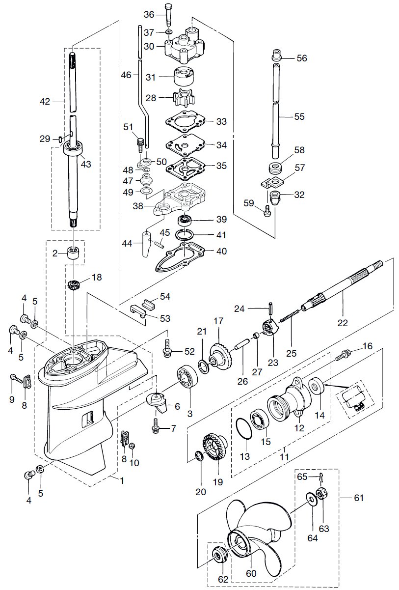 Lager, inre, växelhus Tohatsu M 6 B - M 9,8 B, 2-takt 169 cc samt MFS 8 - MFS 9,8 hk, 4-takt 209 cc