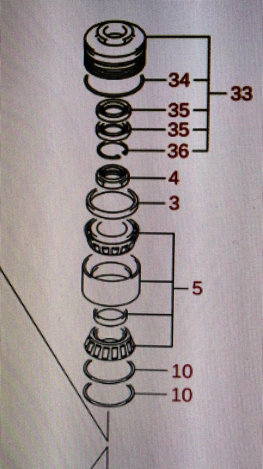 Nr 33 i bild. O-ring nr 34 art 09280-66004, 2 packboxar nr 35 art 09282-24004 och låsning nr 36 art 09381-40003 ingår.
