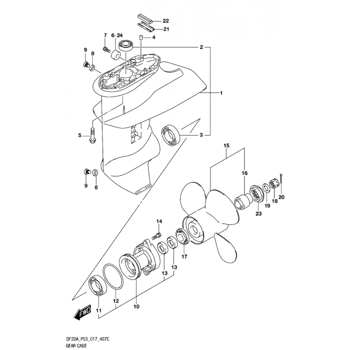 Lagerhus, inkl. lager och tätningar, Suzuki DF 8 A - DF 20 A, 4-takt