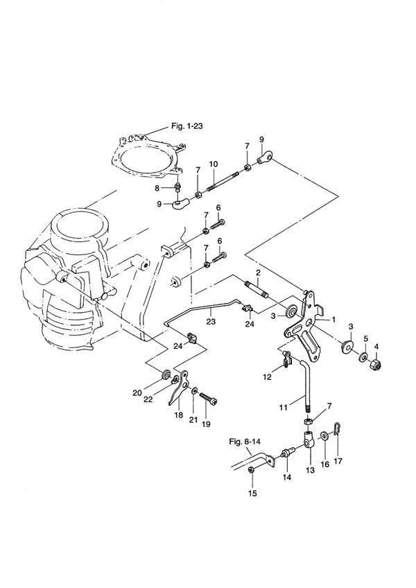 Länk, gas, Mercury 25 - 30 hk, 430 cc 2-takt, Tohatsumodell