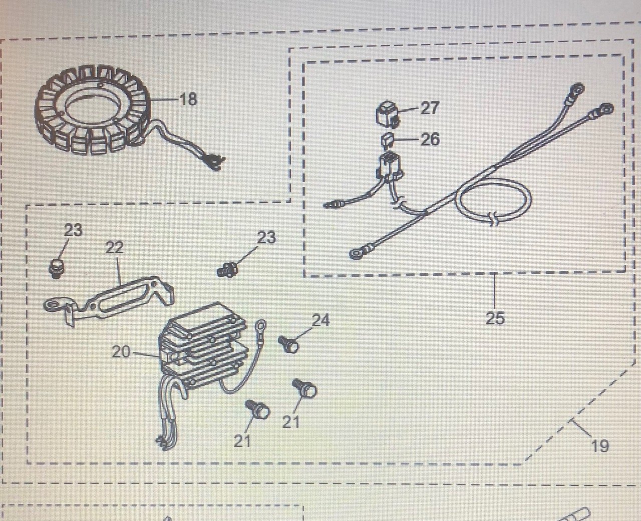 Nr 19 i bild, obs nr 18 alternator ej med i satsen. För komplett sats, batteriladdning manuell modell, inkl nr 18 se art 3RS-06128-0