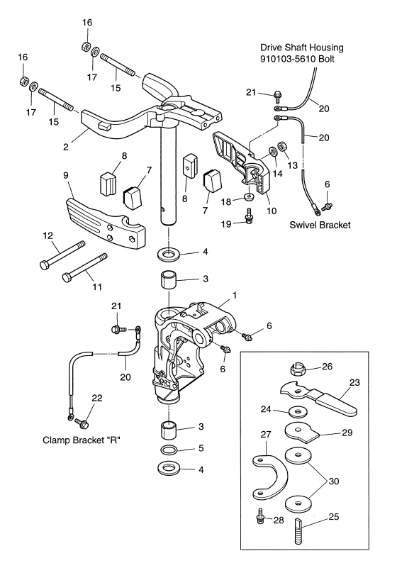 Lock nedre motorbussning, styrbord, Mercury F 10 - F 20 hk, 351 cc, 4-takt