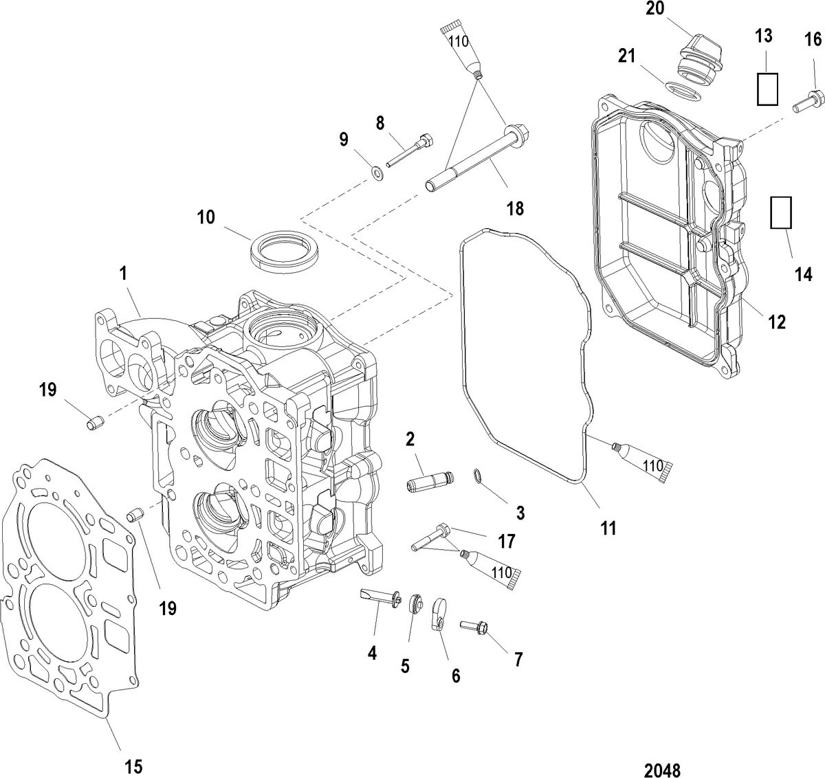 Bult topplock Mercury vissa F 25 hk förgasare, F 30 - F 40 hk, 737 cc samt F 40 - F 60 hk, 995 cc, 4-takt (ej Tohatsumod) flera modeller