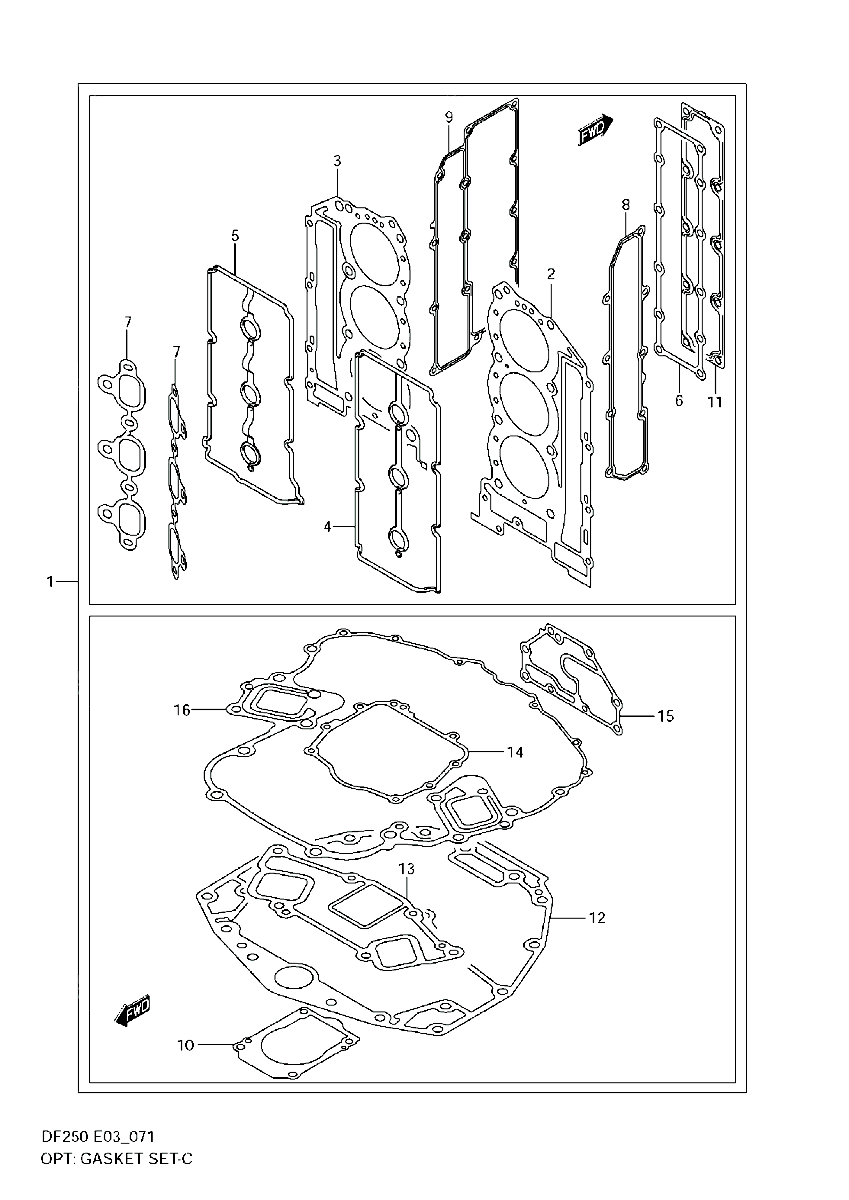 Motorpackningssats DF 200 T - DF 225 T - DF 250 A - DF 300 A , vissa nyare modeller