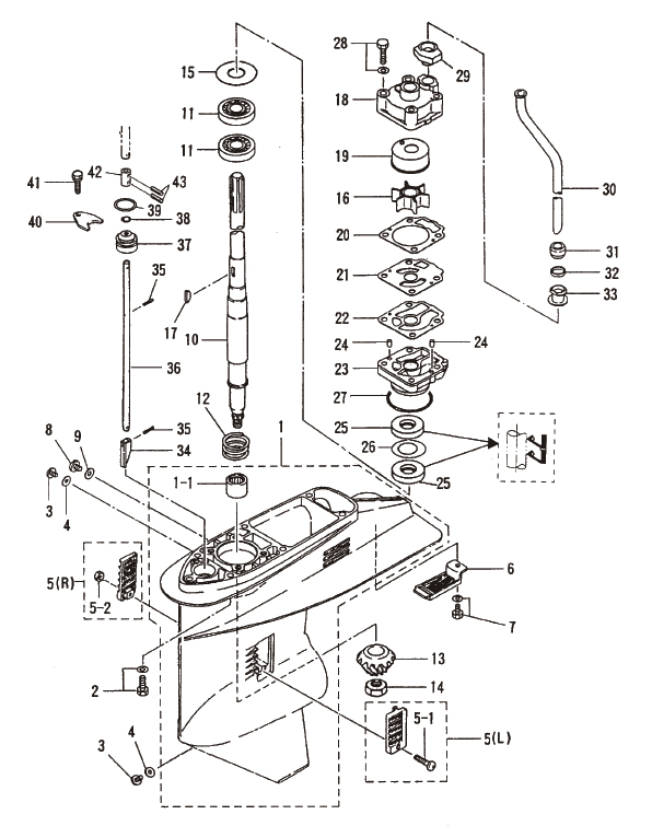 Nedre växelstång Mercury 40 - 50 hk, 697 cc 2-takt