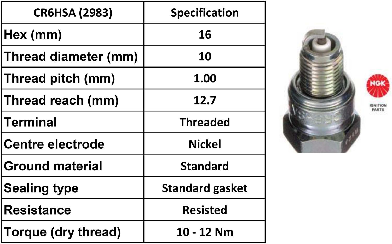 Tändstift NGK CR 6 HSA till Suzuki DF 2,5 hk, 4-takt