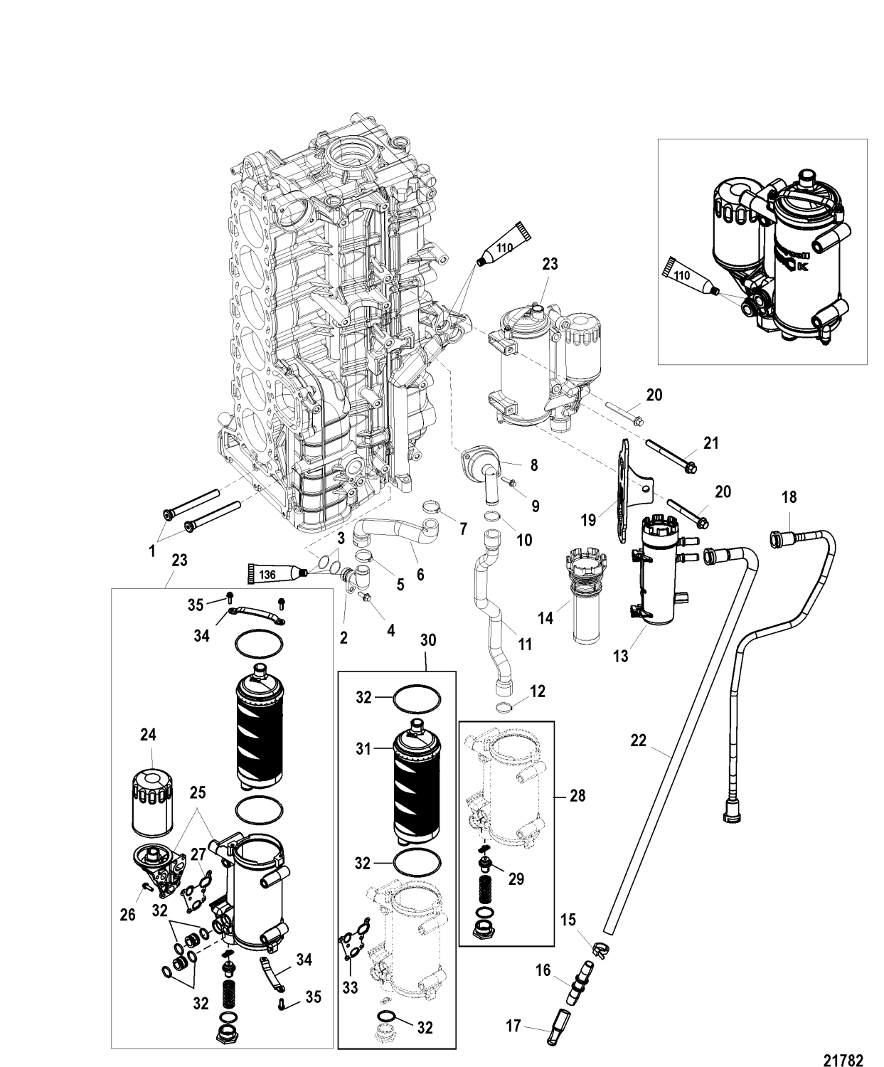 Nippel kylvatten Mercury Verado L 4 och L 6, flera modeller samt F 150 F, 3 liter, 4-takt