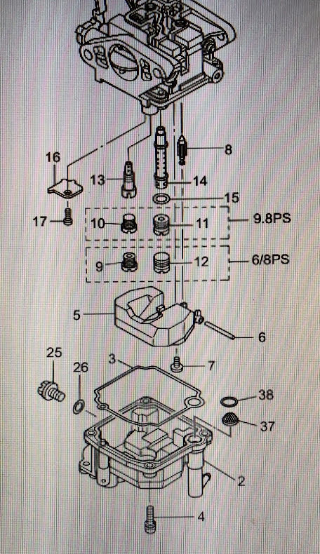 O-ring/tätning stigarrör förgasare Tohatsu MFS 8 - MFS 9,8 hk och MFS 9,9 C+D - MFS 20 C+D, 4-takt