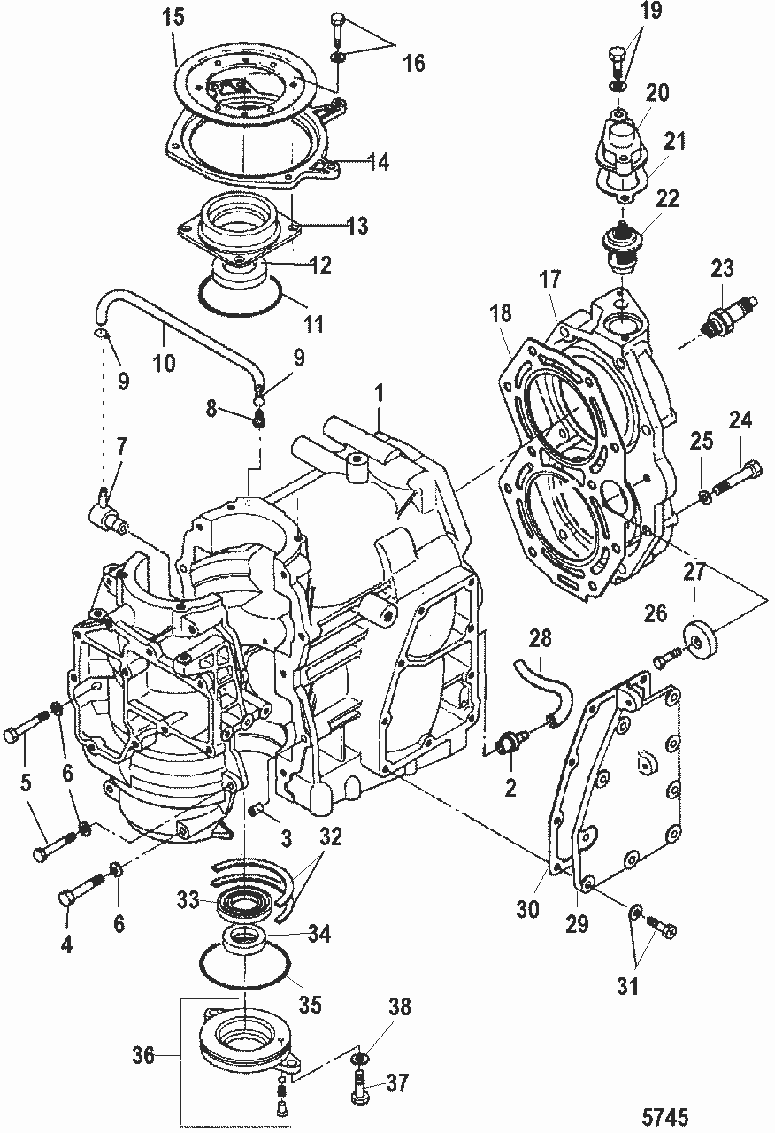 Sitter även i nedre vevhustätning på 25 - 30 hk, 430 cc, 2-takt, se bild 3 nr 34