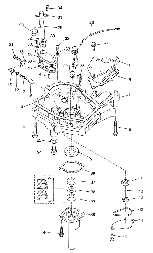 Packbox vevaxel Tohatsu M 40 D - M 50 D, 2-takt samt MFS 4 A - MFS 6 A, 4-takt