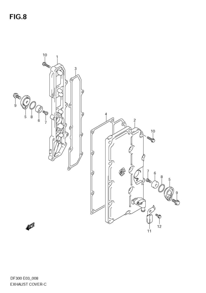 Packning, styrbord, avgaskylplatta Suzuki DF 200 - DF 300 hk, 4-takt