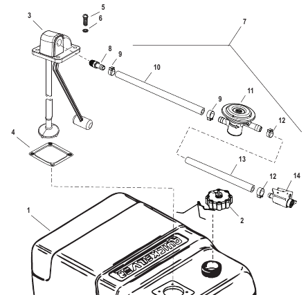 Bränslepickup med anslutning och mätare Mercury bränsletank ca 25 liter, 6,6 gallon vissa modeller