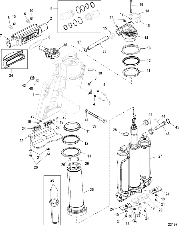 Låspin rigg Mercury V 8 och V 10, 4-takt flera modeller