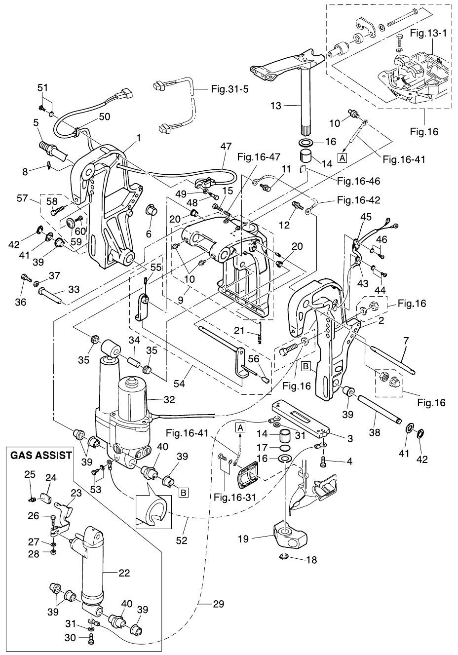 Övre pinne powertrim/tilt Mercury F 25 - F 30 hk 500 cc och 525 cc 4-takt samt 40 - 50 hk, 697 cc 2-takt Tohatsumodeller med trim/tilt.