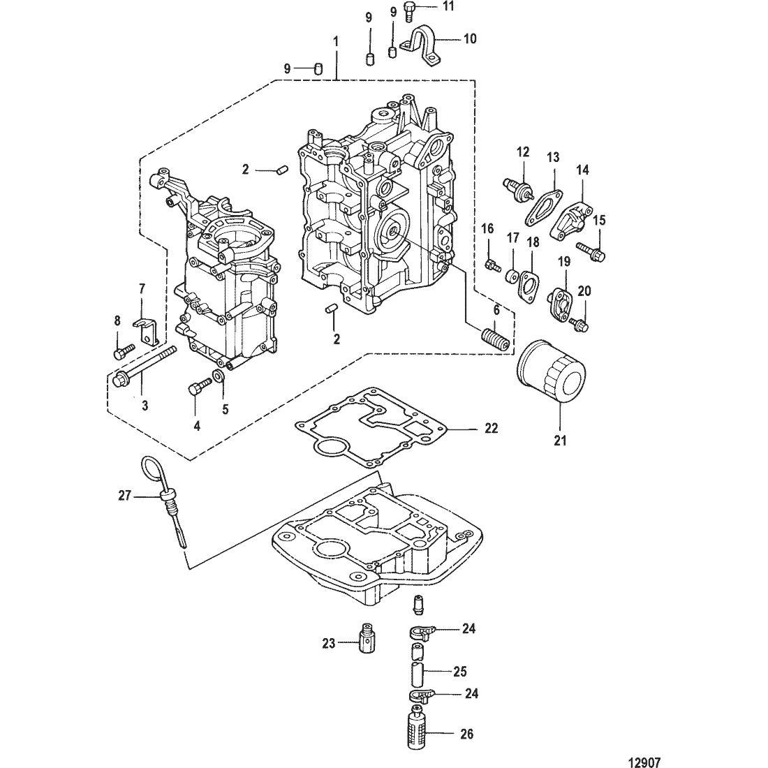 Plunger, adaptorplatta, Mercury F 8 - F 9,9 hk 209 cc förgasarmotor, F 15 SeaPro 328 cc, F 10 - F 20 hk, 351 cc samt F 25 EFI - F 30 EFI hk, 526 cc 4-takt Tohatsumodeller