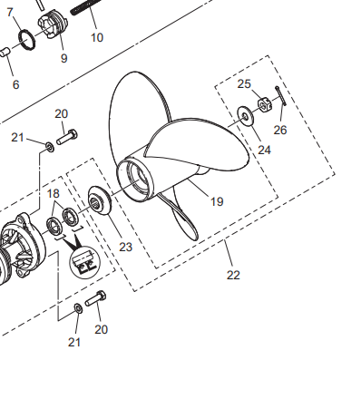 Yttre bricka propellermutter M 9,9 - M 30 hk 2-takt, MFS 9,9 - MFS 30 hk, 4-takt