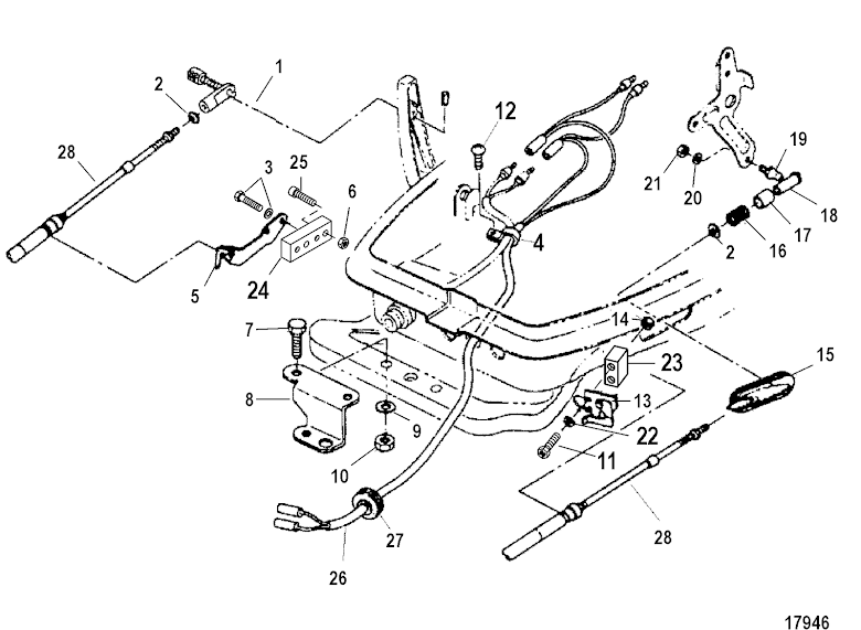 Låsning växelwire reglagemodell Mercury 25 - 30 hk, 430 cc, 2-takt Tohatsumodell