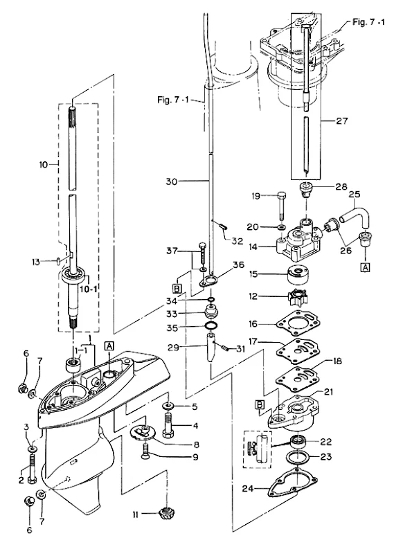 samt propelleraxel 25 - 30 hk, 430 cc, 2-takt och F 25 - F 30 hk, 4-takt - nr 3 i bild 3