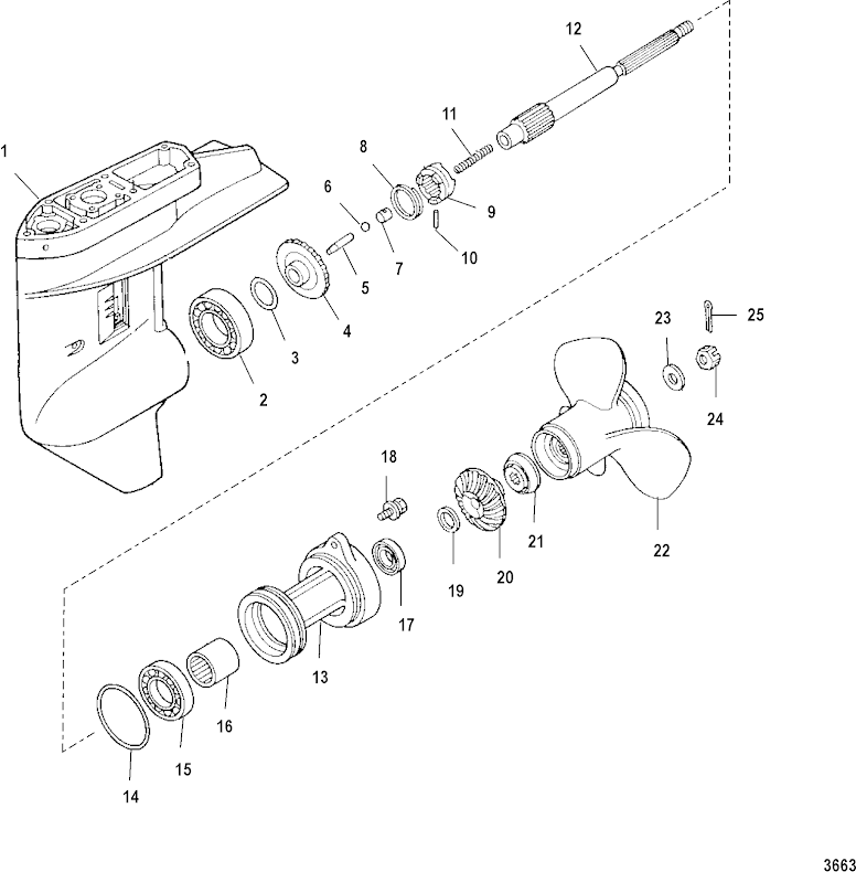 samt propelleraxel 25 - 30 hk, 430 cc, 2-takt och F 25 - F 30 hk, 4-takt - nr 3 i bild 3
