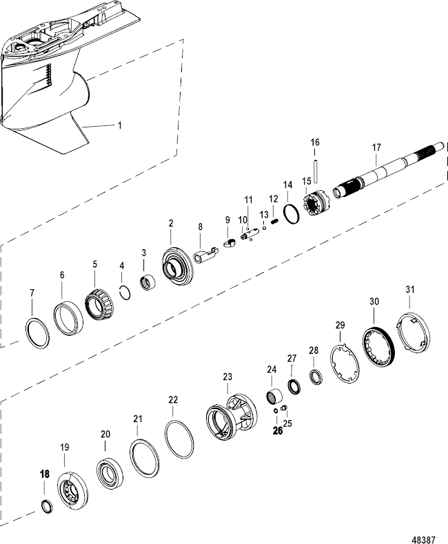 Shimssats växelhus Mercury F 80 - F 115 hk, 2,1 liter samt F 150 hk, 3 liter 4-takt samt flera modeller 2-takt och 4-takt