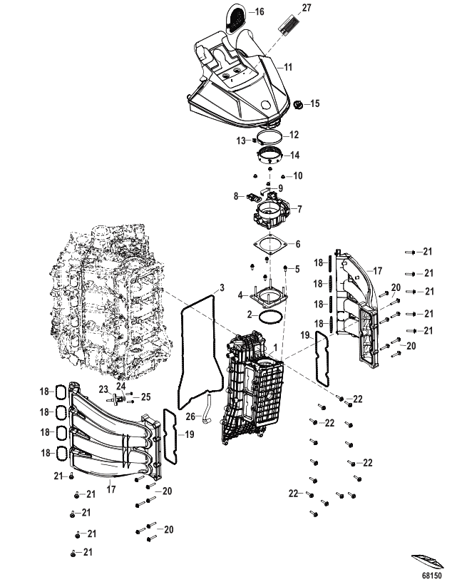Sil insug, luftfilter, Mercury V 6 och V 8, 4-takt