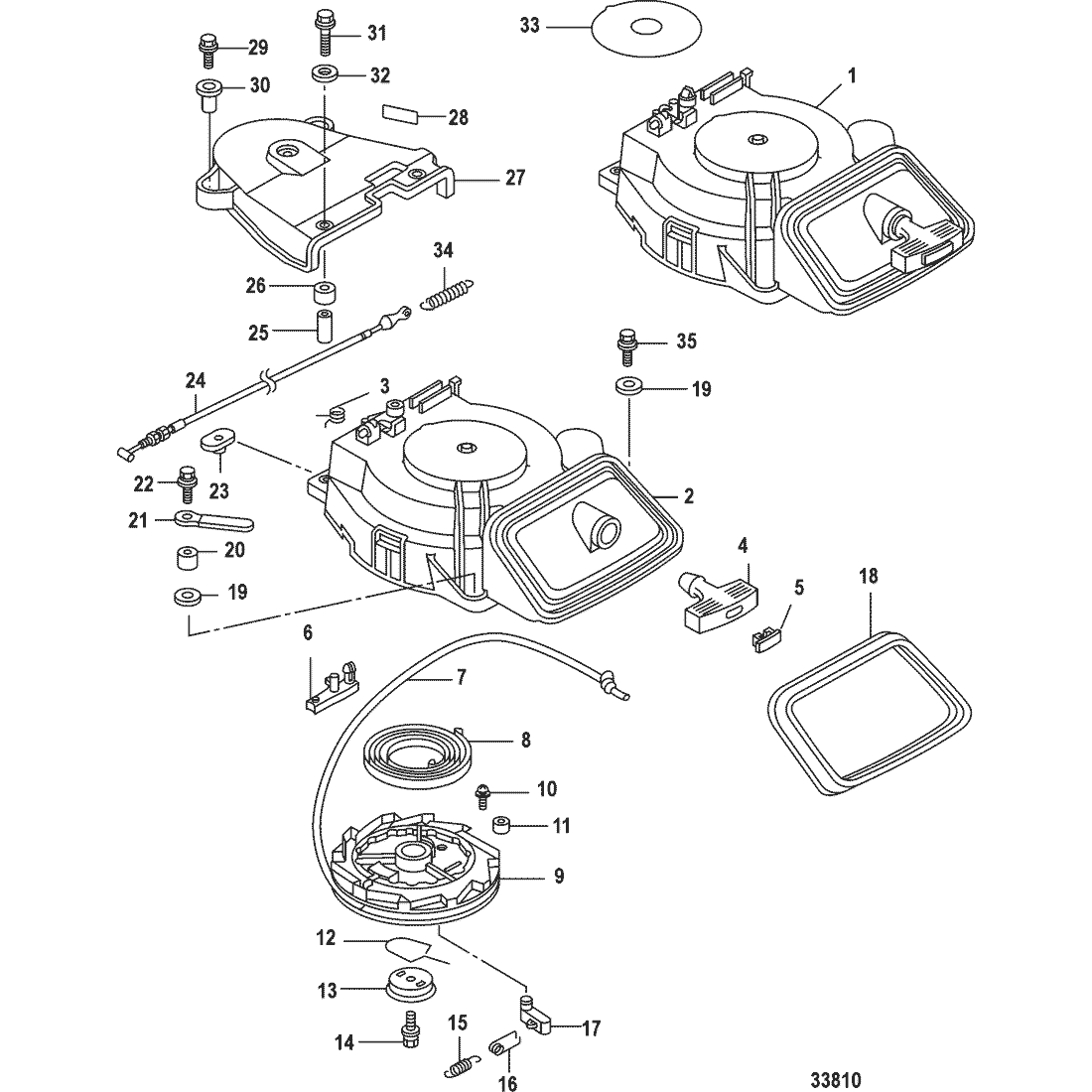 Skruv startapparat Mercury F 10 - F 20 hk, 4-takt, 351 cc och 333 cc samt F 25 - F 30 hk, 500 cc, 4-takt Tohatsumodeller