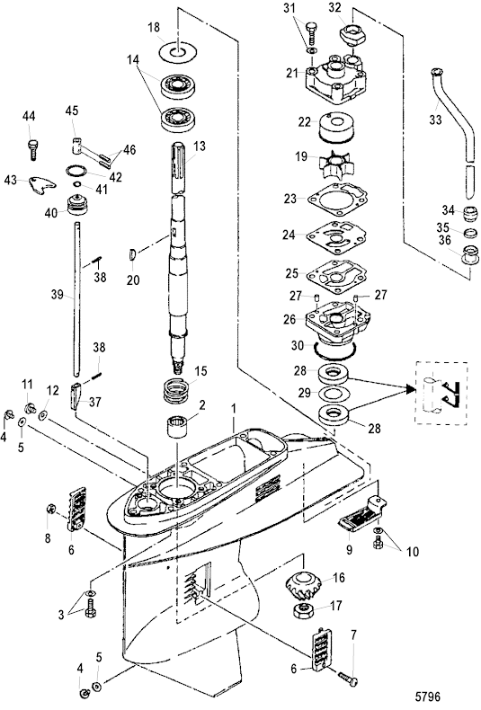 Stålplatta under impellerhus Mercury 40 - 50 hk, 697 cc 2-takt