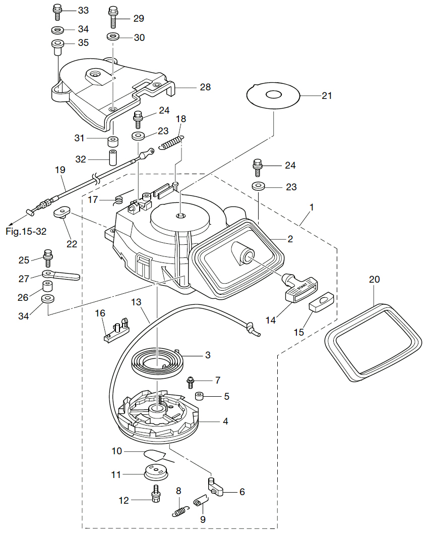 Startapparat, manuell, Tohatsu MFS 9,9 C+D - MFS 20 C+D, 351 cc, 4-takt